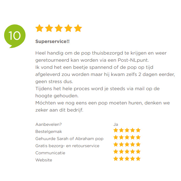 Hoe werkt een Sarah of Abraham pop huren via de post?
