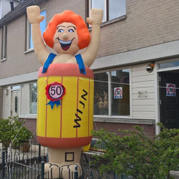 Jouw moeder, vrouw, vriendin of zus wordt binnenkort 50 jaar en ze houdt wel van een geintje? Dan is het tijd om deze Sarah pop in wijnvat voor haar 50e verjaardag te bestellen. We houden het discreet natuurlijk. De Sarahpop is niet helemaal naakt, maar staat gezellig in een wijnvat op de stoep. Dankzij deze metershoge opblaasbare verjaardagpop die je werkelijk overal neer kunt zetten, wordt het een gezellig knalfeest. Voor haar 50e verjaardag uiteraard, maar je kunt de pop natuurlijk ook voor andere verjaardagen of feesten laten neerzetten. Inclusief de wedstrijden van het Nederlands elftal, want dat kleurt prachtig bij haar oranje haar.
